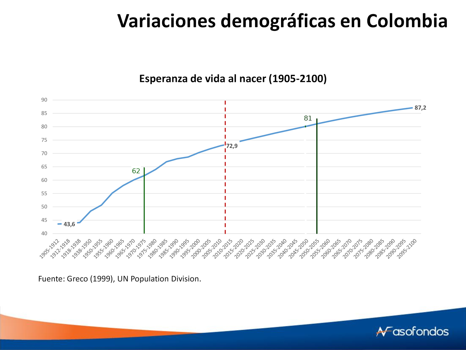Sí, la esperanza de vida al nacer se ha incrementado grandemente. Pero como antes vimos, lo que mporta saber para el asunto de riesgo de longevidad pensional es si nuestros mayores van a vivir más: la esperanza de vida a los 60 / 70 / 80 años.